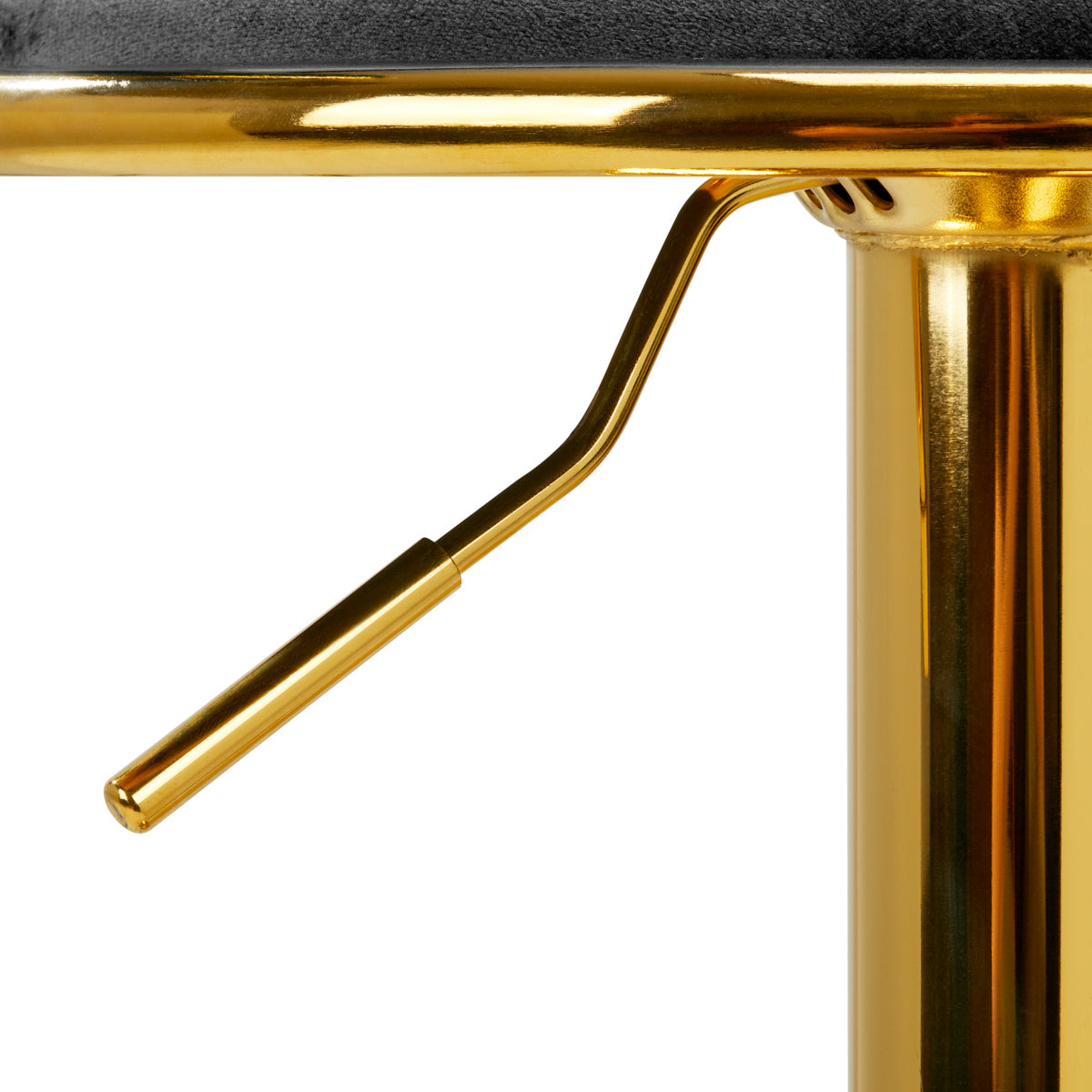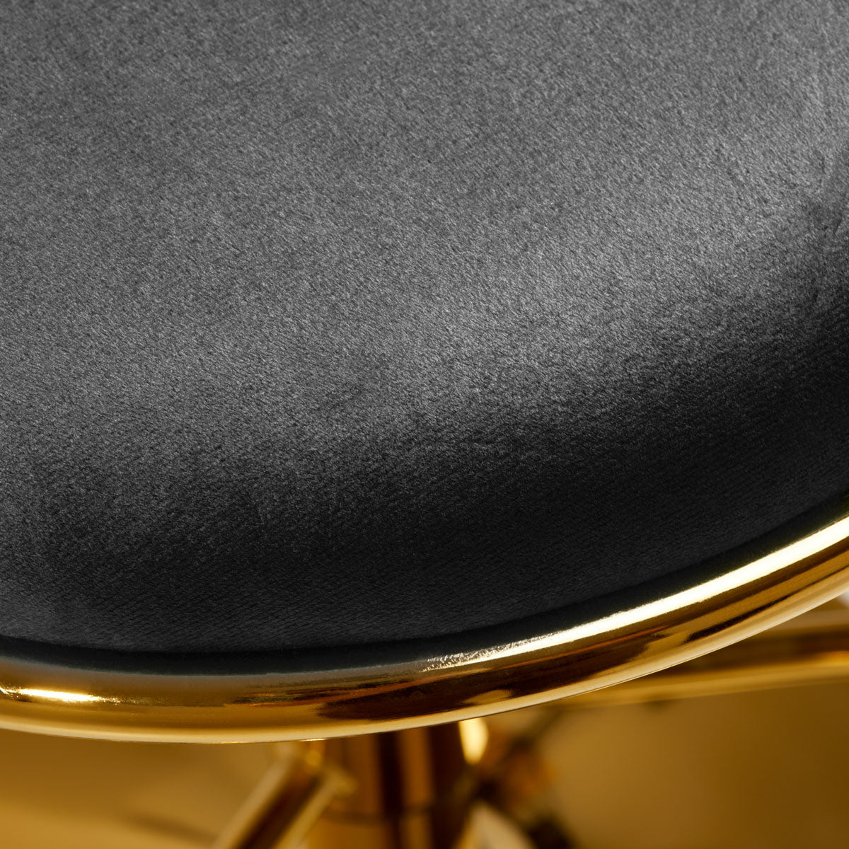Angenehm in der Haptik verleihen Samtpolster in Grautönen dem Hocker einen einzigartigen Charakter und das ästhetisch verwobene Material an der Rückenlehne unterstreicht die einzigartige Optik der Möbel. Das Finish macht die Möbel zu einem Blickfang. Der Rahmen in Goldtönen verleiht Eleganz und Prestige und harmoniert perfekt mit Samt.