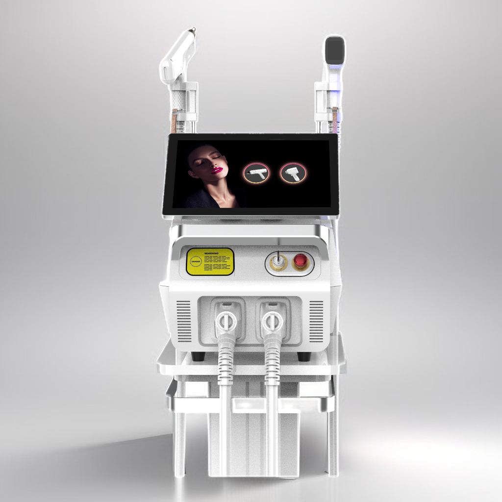 Natürlich! Hier ist Ihr neues Lasergerät, das sowohl Diodenlaser als auch YAG-Laser in einem einzigen Gerät vereint. Wir haben es speziell entwickelt, um verschiedene Behandlungsanwendungen mit nur einem Gerät durchzuführen, was sowohl praktisch als auch kosteneffizient ist.