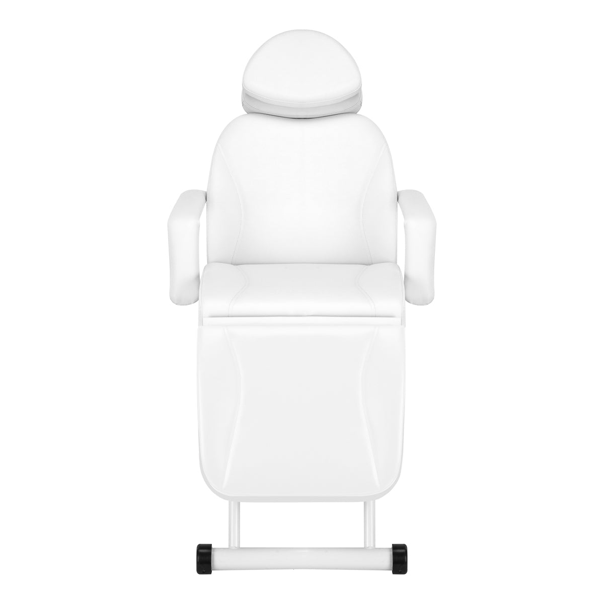 Ein Loch in der Kopfstütze, das unter einem richtig profilierten Kissen versteckt ist, macht den Stuhl perfekt für Gesichts- und Körperbehandlungen. Die stabilen Armlehnen bieten dem Nutzer ausreichend Halt. Diese in zwei Hälften geteilten Elemente sind beweglich, so dass sie gut passen, wenn die Position der Rückenlehne geändert wird, und außerdem können sie leicht entfernt werden, was es einfacher macht, Platz im Sitz einzunehmen.