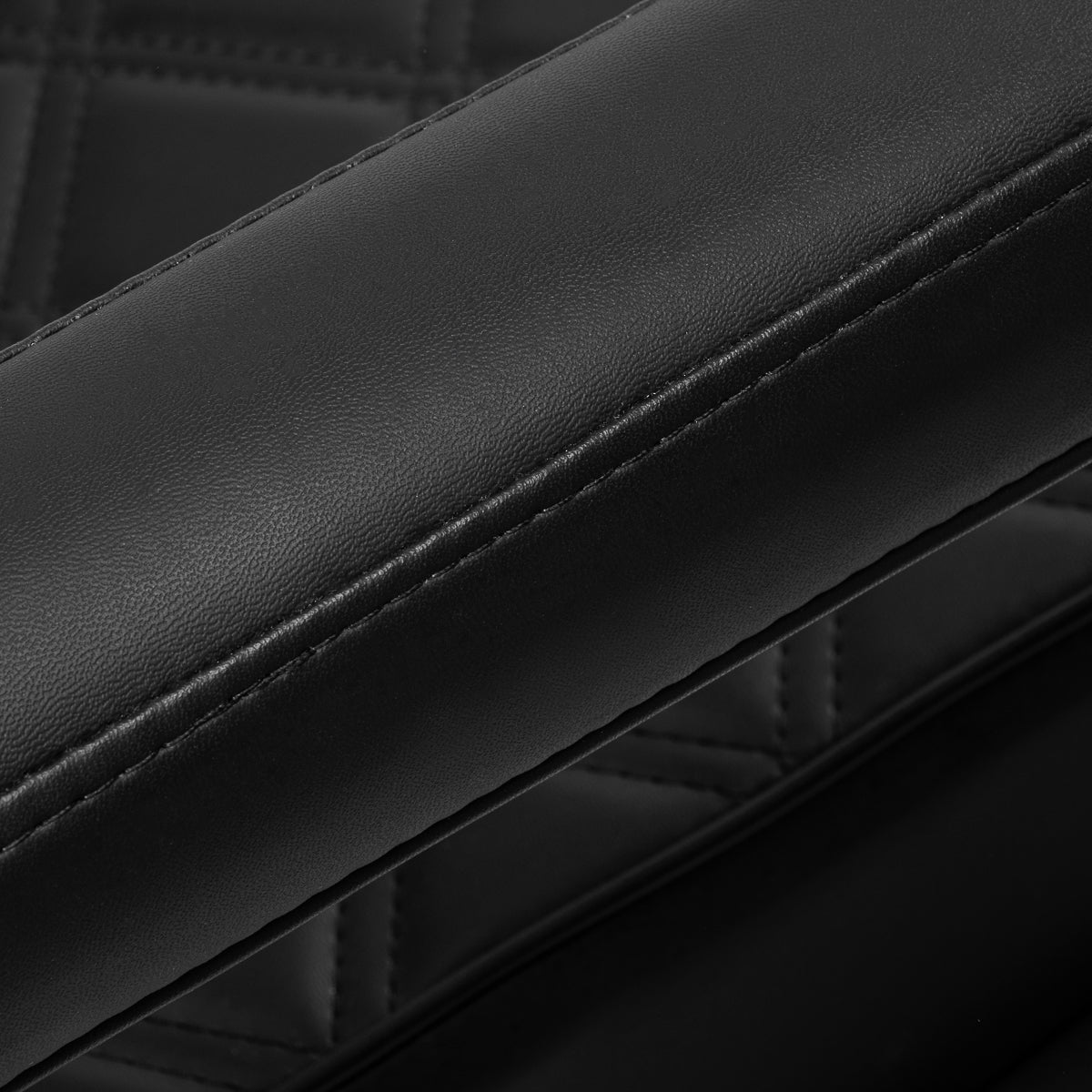 Die solide Basis sorgt für Stabilität und hohen Nutzungskomfort. Die Sitzfüllung aus verformungsbeständigem Schaumstoff und die Polsterung aus angenehm anzufassendem Kunstleder mit mattem Finish sorgen für Langlebigkeit und Komfort. Diese Materialien sind feuchtigkeitsbeständig, strapazierfähig und leicht zu reinigen. Der schwarze Farbe verleiht dem Stuhl einen einzigartigen Charakter, und sein eleganter Stil passt perfekt zu jeder Friseureinrichtung.