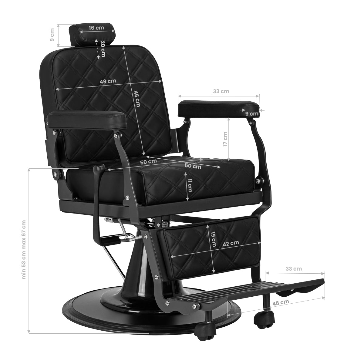Der Barberstuhl Gabbiano 8821 ist ein elegantes Möbelstück, das mit einem langlebigen hydraulischen Wagenheber und einer verstellbaren Fuß- und Rückenlehne ausgestattet ist. Eine breite Palette von verstellbaren Positionen ermöglicht es, den Stuhl an die durchgeführten Behandlungen anzupassen, was den Komfort der Dienstleistungen spürbar erhöht. Stilvolle Nähte verleihen ihm Charakter und machen ihn zu einem dekorativen Element jedes Interieurs.