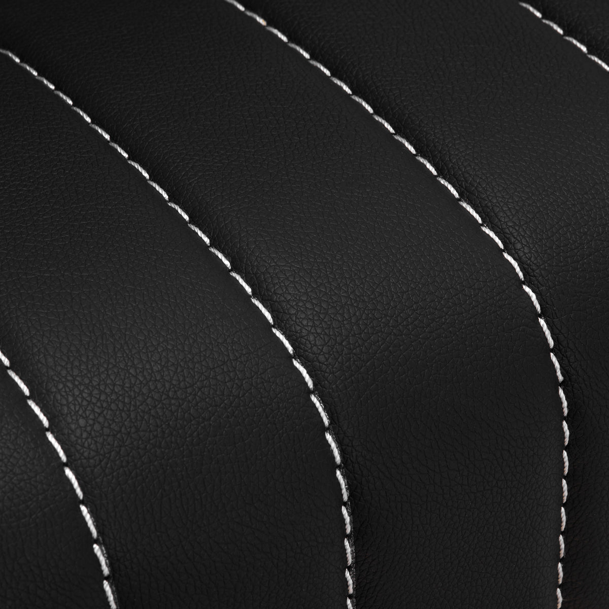 Die solide, breite Konstruktion des Sockels sorgt für Stabilität und damit für hohen Bedienkomfort. Die Füllung aus strapazierfähigem, verformungsbeständigem Schaumstoff und die Polsterung aus angenehm haptischem Kunstleder sorgen für die Langlebigkeit der Möbel und ihre komfortable Nutzung für eine lange Zeit. Außerdem machen sie die Geräte feuchtigkeitsbeständig, langlebig und leicht zu reinigen. Der schwarze Bezug zusammen mit ästhetischen Nähten verleiht ihm einen einzigartigen Charakter. Polierte Designer-Dekorationselemente, die sich auf den Vintage-Stil beziehen, fügen sich perfekt in die Atmosphäre von Friseursalons ein und schaffen deren erstaunliche Atmosphäre.