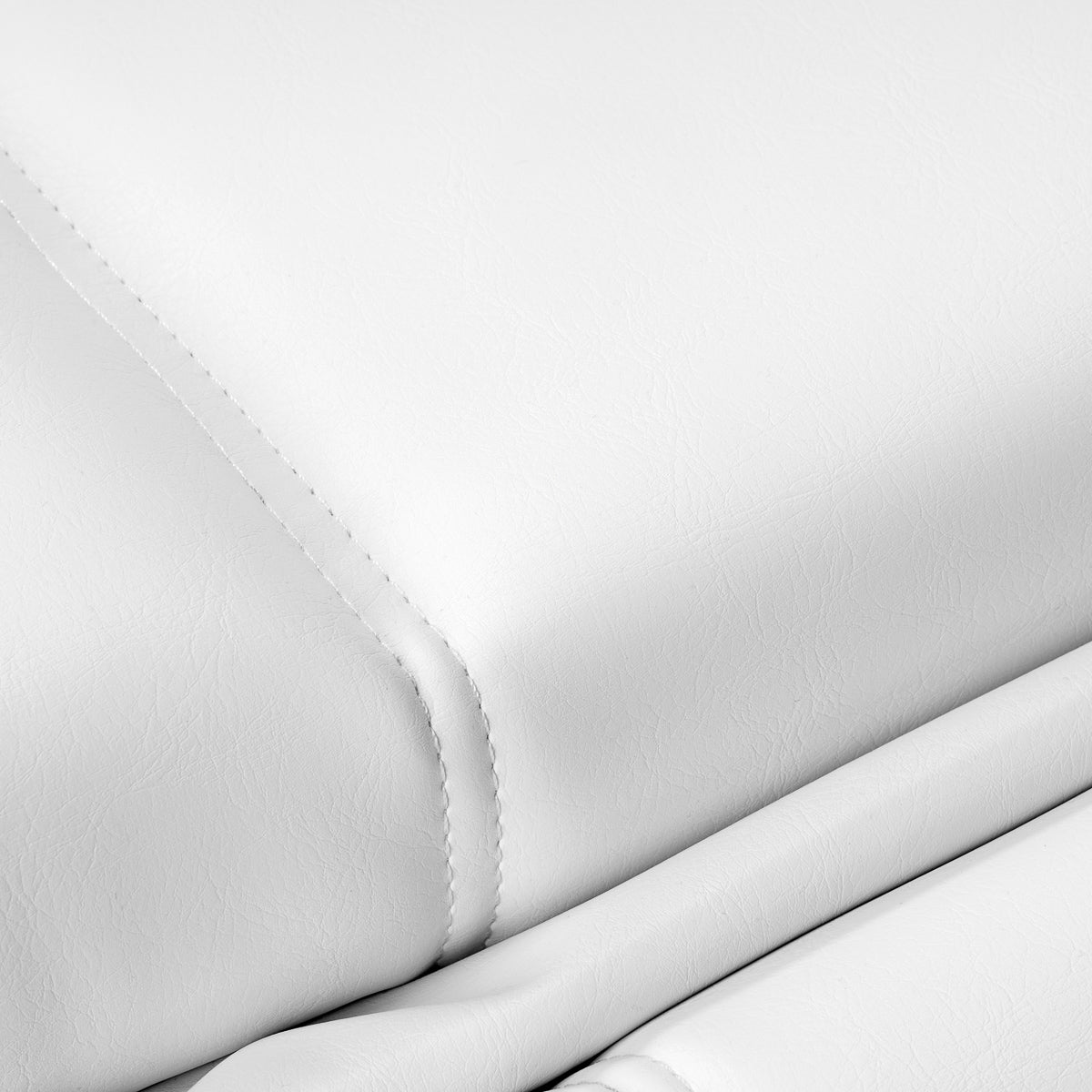 Die solide Bauweise sorgt für die Stabilität und Langlebigkeit der Möbel. Der Sessel ist mit Schaumstoff gefüllt und mit einem angenehm anzufassenden Kunstleder in Weißtönen bezogen. Dank der Verwendung dieses Materials ist das Gerät feuchtigkeitsbeständig und leicht zu reinigen. Minimalistisches, schlichtes Design und klassische Farben sorgen dafür, dass es in jedes Interieur passt.