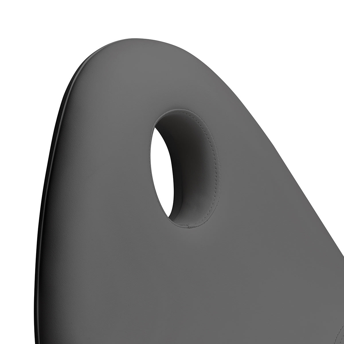 Die richtige Art der Profilierung verleiht dem Stuhl eine ergonomische Form und ermöglicht eine bequeme Positionierung des Körpers darin. Die Ausrüstung kann bis zur Position der Couch ausgeklappt werden und eignet sich dank des unter dem Kissen versteckten Lochs in der Kopfstütze auch perfekt für Rückenbehandlungen oder Massagen.