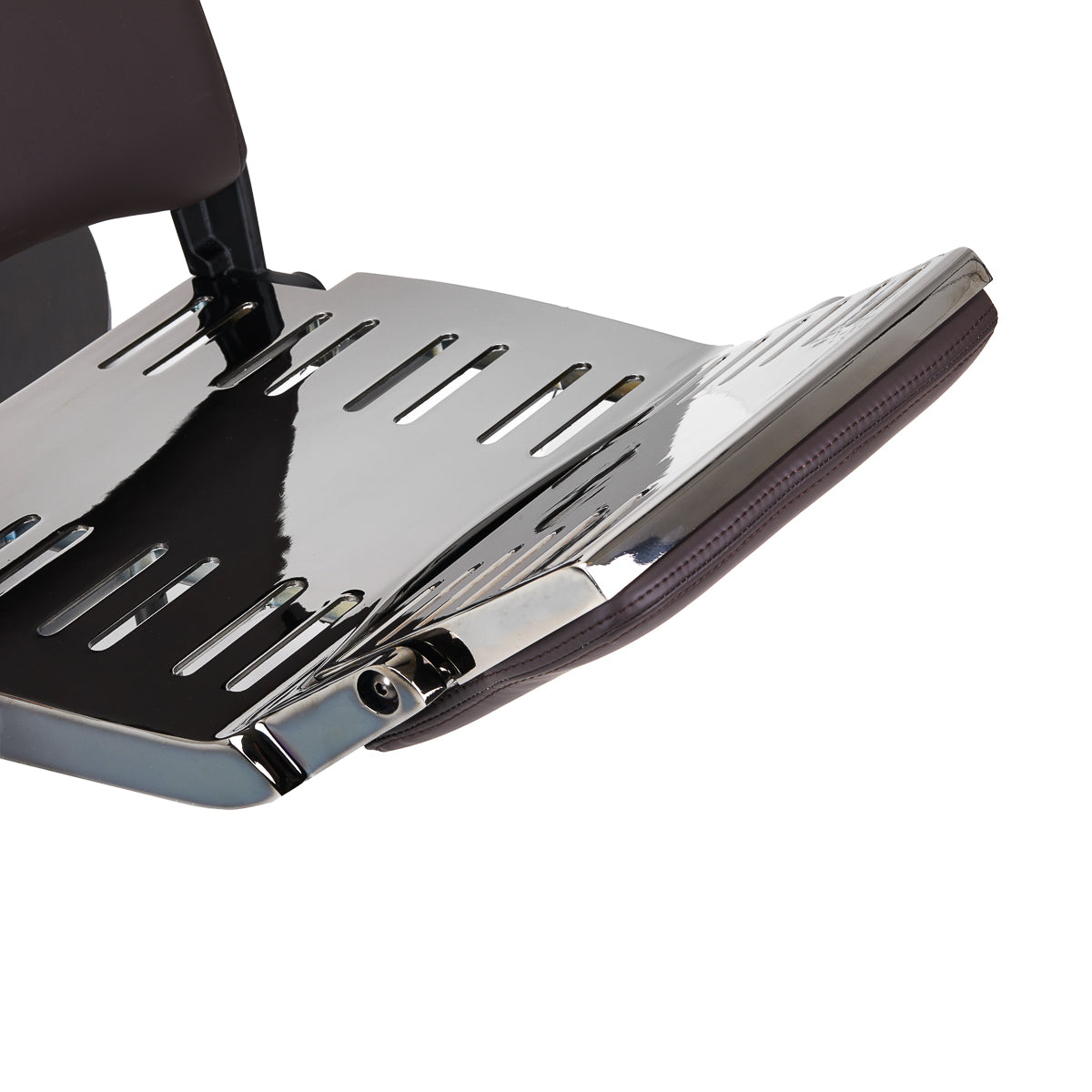 Die konturierte Rückenlehne und die um 30 cm ausziehbare Kopfstütze garantieren eine komfortable Unterstützung für Rücken und Kopf, was besonders bei längeren Behandlungen wichtig ist. Der Schwenkmechanismus macht die Arbeit effizienter und erleichtert den Zugang zum Kunden von allen Seiten, auch in kleinen Räumen. Der Sessel lässt sich in eine halb liegende Position zurücklehnen. Diese Einstellung bietet bei bestimmten Diensten einen besseren Zugriff. Armlehnen in der richtigen Höhe ermöglichen eine korrekte Positionierung der Schultern des Kunden – das bedeutet, dass er seinen Kopf nicht in den Schultern versteckt oder krumm sitzt – was die Durchführung präziser Behandlungen erheblich erleichtert.