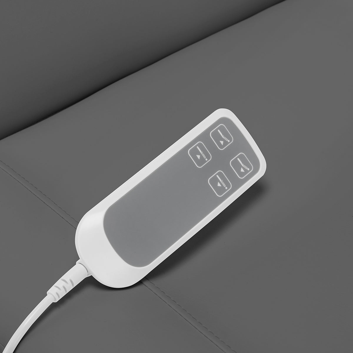 Mit Hilfe einer einfach zu bedienenden Fernbedienung lässt sich der Stuhl stufenlos in 2 Ebenen verstellen – er ist in Höhe und Rückenlehne verstellbar. Die Sitzfläche lässt sich auf eine Höhe von 61 cm bis 84 cm verstellen, im voll ausgefahrenen Zustand erreicht der Stuhl eine Länge von 2 m. Diese Abmessungen ermöglichen eine einfache Verwendung des Geräts für Menschen unterschiedlicher Körpergröße und ermöglichen die Anpassung an die aktuelle Behandlung und die individuellen Bedürfnisse, was sich sowohl auf den Komfort des Benutzers als auch auf die Person auswirkt, die die Dienstleistungen durchführt. Griffe auf beiden Seiten des Sitzes ermöglichen es Ihnen, die Fernbedienung so aufzuhängen, dass sie immer griffbereit ist.