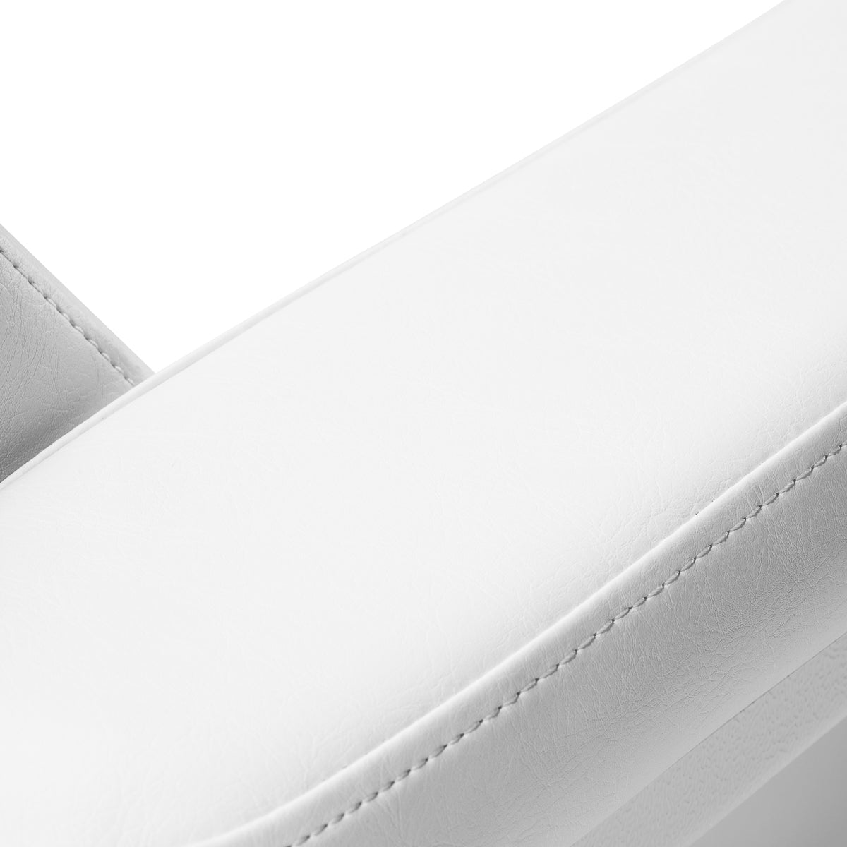 Der Sessel ist mit verformungsbeständigem Schaumstoff gefüllt und mit einem angenehm anzufassenden Kunstleder in einem Weißton bezogen. Die Verwendung dieses Materials macht das Gerät feuchtigkeitsbeständig und leicht zu reinigen. Sorgfältig gefertigte Nähte verleihen dem Sofa Stil, während die robuste Konstruktion für eine lange Lebensdauer sorgt. Minimalistisches Design und klassische Farben machen es zu einer perfekten Ergänzung für jedes Interieur.