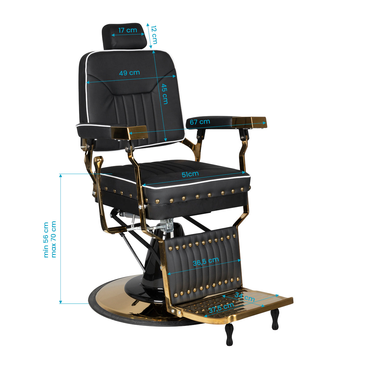 Neuheit in unserem Angebot - Barberstuhl Filippo. Es ist ein modernes, perfekt gefertigtes Möbelstück. Es sorgt für maximalen Komfort Ihrer Kunden bei der Behandlung. Neben der Höhenverstellung verfügt der Stuhl über eine einstellbare Rückenlehne. Trotz seines geringen Platzbedarfs ist es möglich, den Kunden in eine bequeme, halbliegende Position zu bringen. Der bequeme Sitz ist mit hochwertigem Kunstleder bezogen. Ein breites Gestell sorgt für die Stabilität des Stuhls bei der Behandlung. Ein weiterer Vorteil ist die Möglichkeit, die Kopfstütze einfach zu verstellen. Es ist in Schwarz erhältlich.