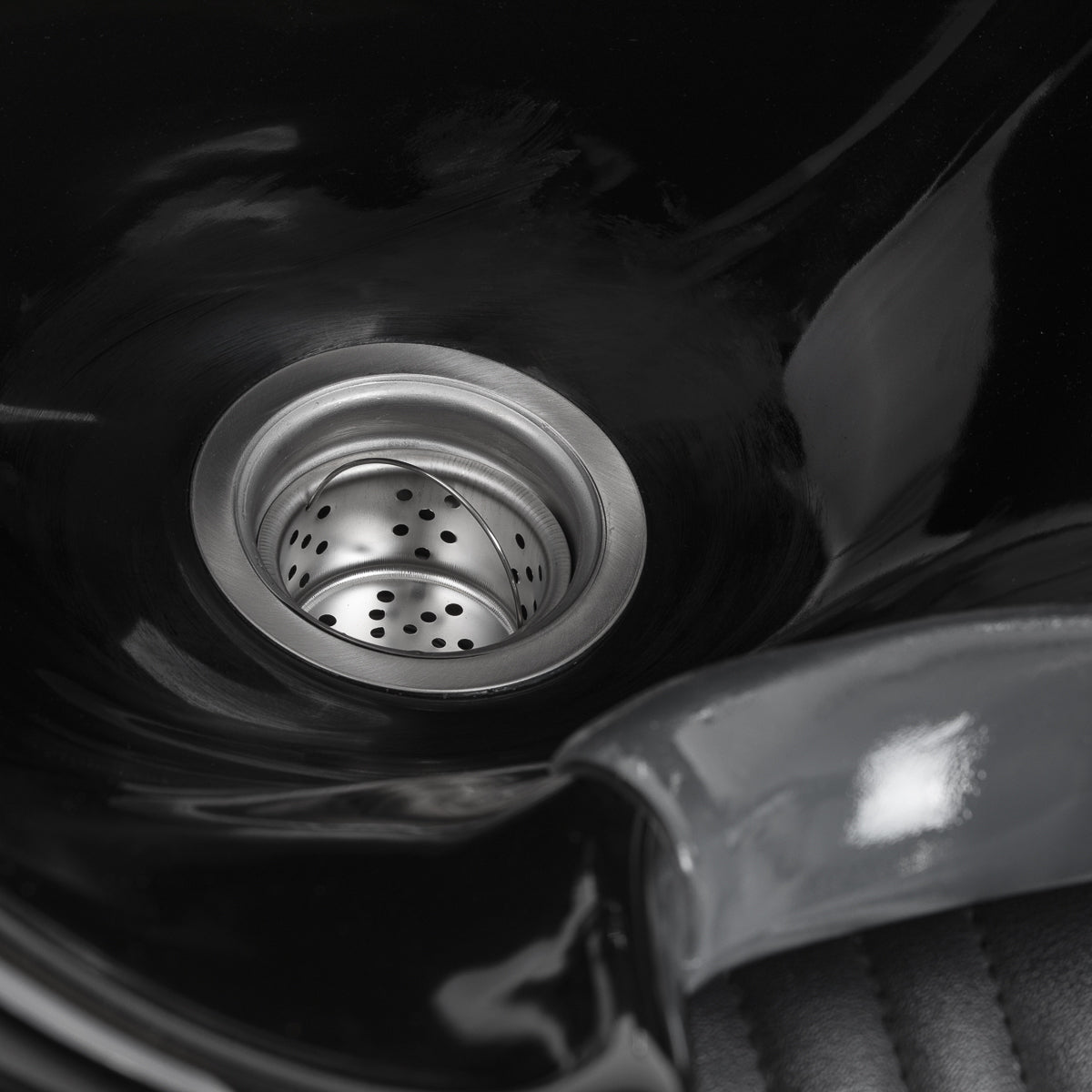 Die tiefe Keramikschale des Waschbeckens in Schwarztönen verhindert übermäßiges Spritzen von Wasser und Präparaten, die während der Behandlungen verwendet werden. Auf diese Weise können Sie bequem und effektiv eine breite Palette von Friseurdienstleistungen durchführen. Die Beweglichkeit der Schüssel macht es einfach, den Neigungswinkel an die individuellen Bedürfnisse anzupassen. Das verwendete Material macht das Waschbecken langlebig, resistent gegen Verfärbungen und Kratzer und sehr leicht zu reinigen. Der richtig profilierte Rand der Schüssel bietet optimalen Halt und Komfort beim Haarewaschen, und die komfortable Kunststoffüberlage in Schwarztönen sorgt dafür, dass der Kunde die mit der Kälte der Keramikoberfläche verbundene Unannehmlichkeiten nicht spürt.