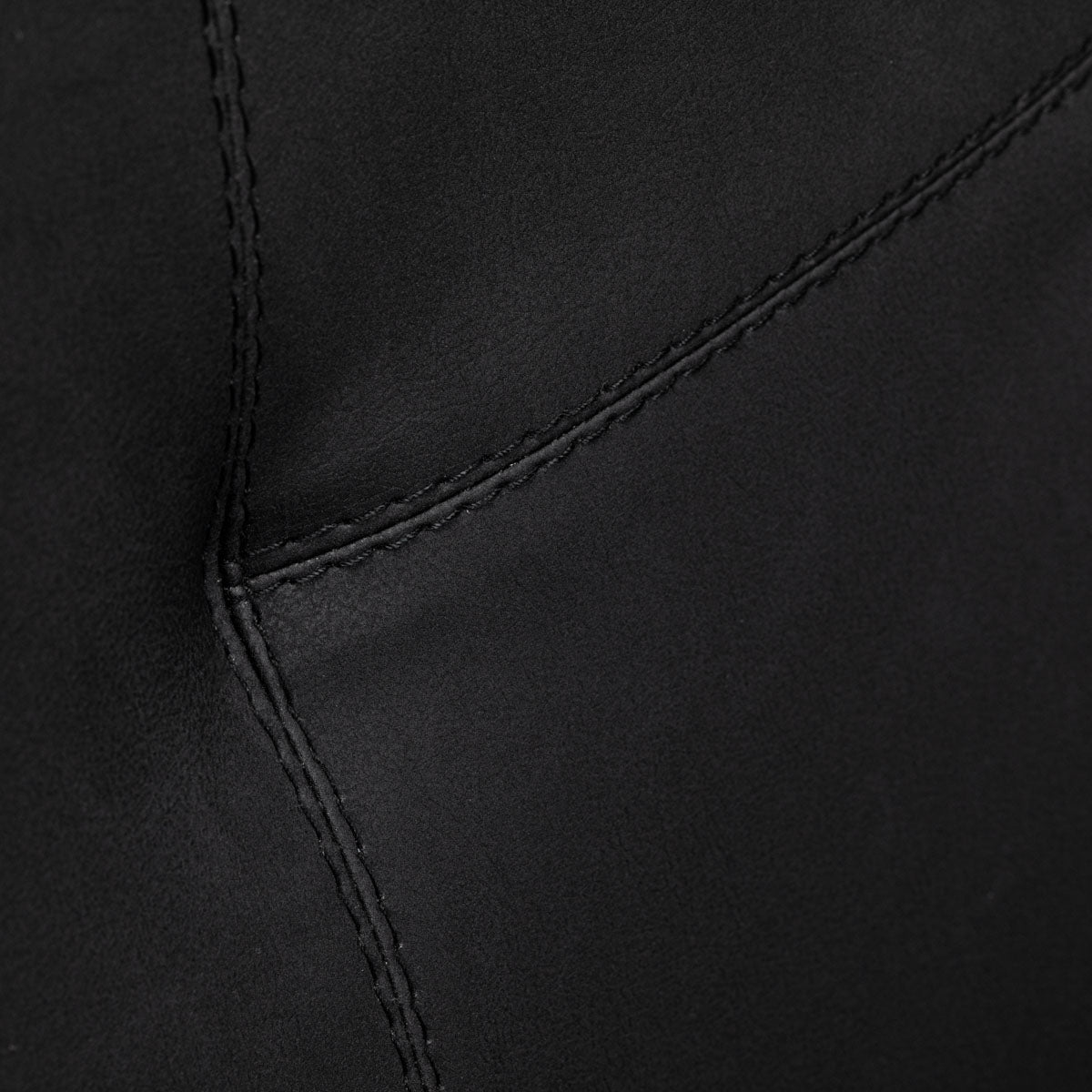 Der Stuhl ist mit Kunstlederbezug gepolstert und dreht sich um seine Achse.