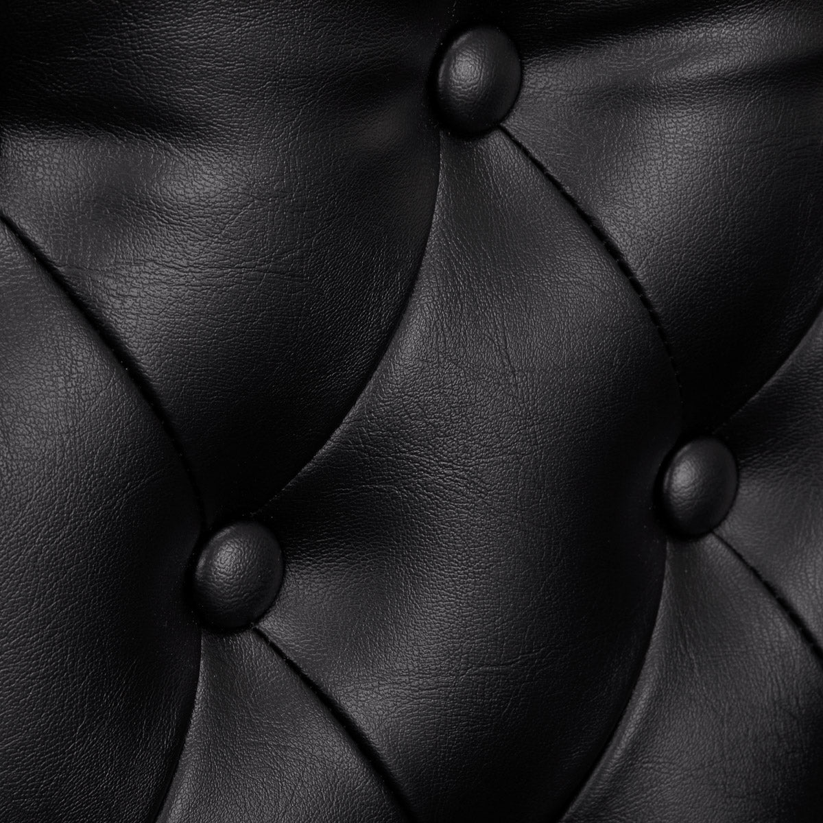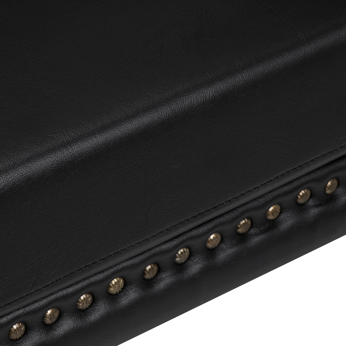 Das funktionale Möbelstück ist mit strapazierfähigem, verformungsbeständigem Schaumstoff gefüllt, während die Polsterung aus angenehm haptischem Kunstleder in Schwarztönen besteht. Die verwendeten Materialien sorgen für eine komfortable Nutzung der Möbel über einen langen Zeitraum und machen die Geräte resistent gegen Feuchtigkeit, langlebig und leicht zu reinigen. Dekorative Steppungen und goldfarbene Elemente verleihen ihm einen Ausdruck zeitloser Eleganz. Der Gabbiano Berlin Friseurstuhl zeichnet sich durch sein exklusives Design aus, das ihm einen einzigartigen Charakter verleiht und den Stuhl in vielen Friseursalons großartig aussehen lässt.