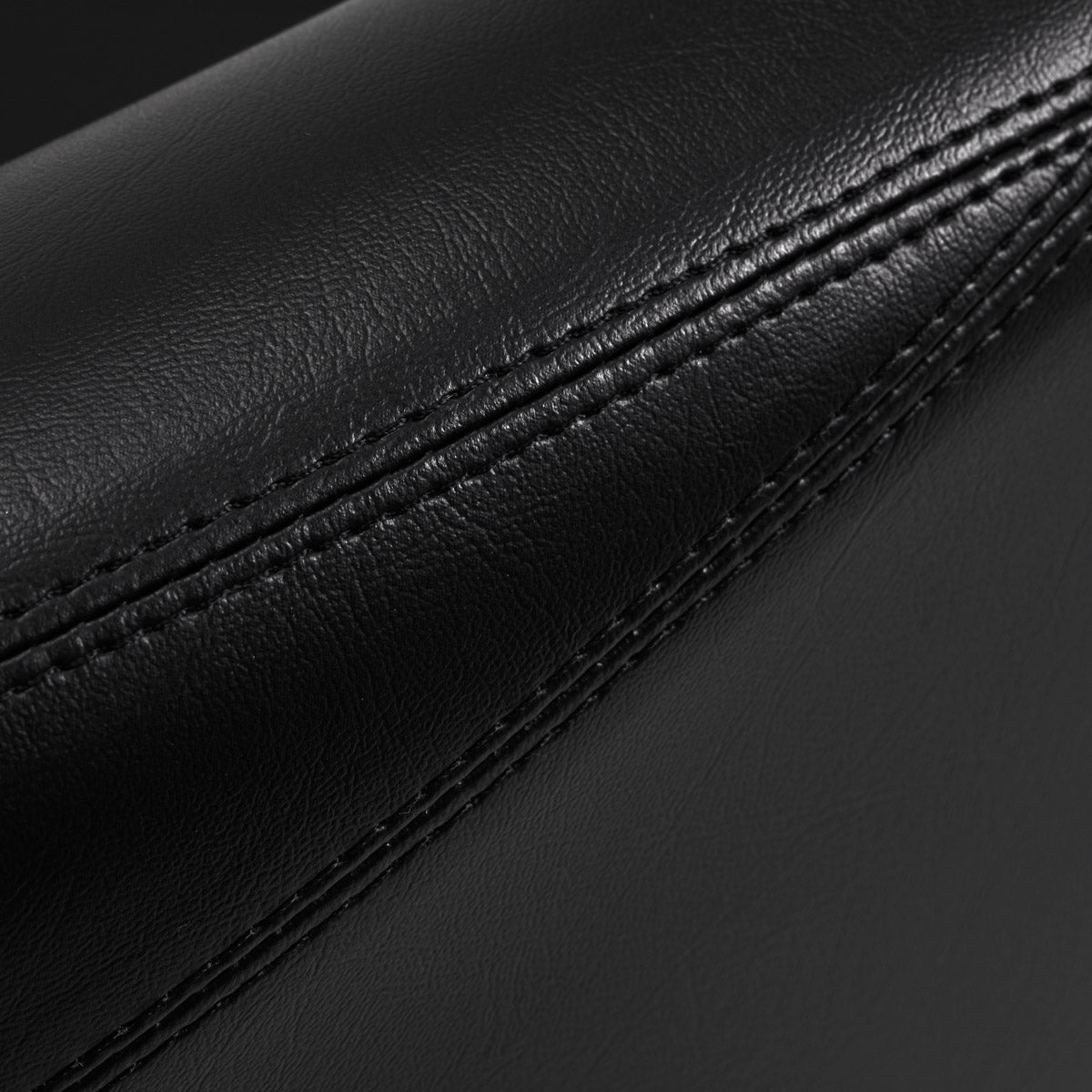 Der Stuhl ist mit Schaumstoff gefüllt, der langlebig ist und sich nicht verformt, was eine bequeme Nutzung für eine lange Zeit gewährleistet. Die Polsterung besteht aus angenehm zu berührendem Lederimitat mit einer spezifischen Struktur. Dank der Verwendung eines solchen Materials ist das Gerät feuchtigkeitsbeständig, langlebig und leicht zu reinigen. Schwarze Beschichtung und silberne Dekorelemente verleihen ihm einen Ausdruck zeitloser Eleganz. Sein unverwechselbares klassisches Finish lässt es in fast jedem Raum großartig aussehen.