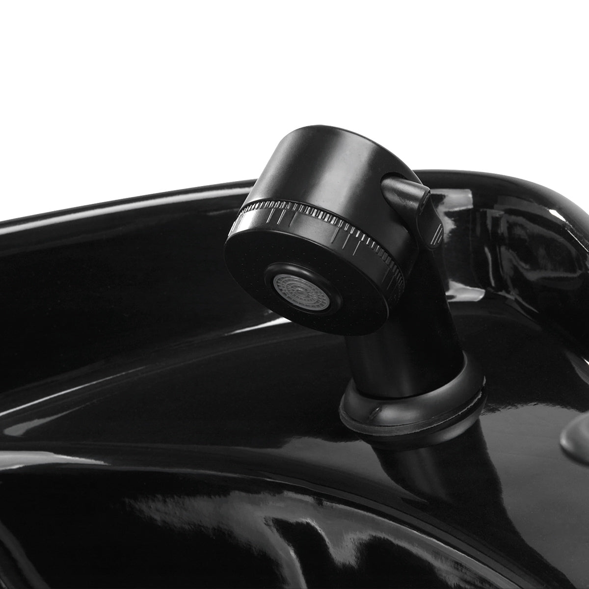 Die schwarze Keramikschale des Waschbeckens mit der richtigen Tiefe verhindert übermäßiges Spritzen von Wasser und Produkten, die während der Behandlung verwendet werden, und ermöglicht eine komfortable Ausführung einer Vielzahl von Dienstleistungen. Die Möglichkeit, den Neigungswinkel der Schüssel einzustellen, ermöglicht es Ihnen, die Einstellung an Ihre individuellen Bedürfnisse anzupassen. Das verwendete Material macht das Waschbecken langlebig, widerstandsfähig gegen Verfärbungen und Kratzer und sehr leicht zu reinigen. Ein richtig profilierter Kragen bietet Halt und Komfort beim Haarewaschen, und dank der bequemen Kunststoffauflage spürt der Kunde nicht die Unannehmlichkeiten, die mit der Kälte der Keramikoberfläche verbunden sind.