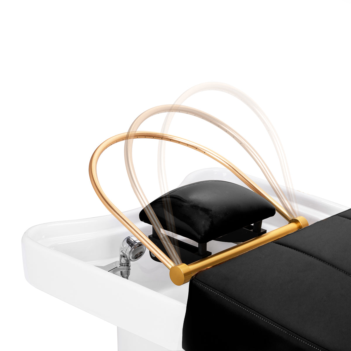 Der goldene Bogen mit einstellbarem Neigungswinkel, der für Waterfall Head SPA entwickelt wurde, ist eine innovative Lösung, die eine umfassende Kopfhautpflege ermöglicht. Die Wasserstrahlen wirken wie eine natürliche Massage, verbessern die Durchblutung, reduzieren Verspannungen und Stress. Der präzise gesteuerte Wasserfluss fördert die Haarregeneration und versorgt die Haut intensiv mit Feuchtigkeit. Der winkelverstellbare Wasserfall sorgt für eine gründliche Reinigung der Kopfhaut und Entspannung und lindert Beschwerden wie Kopfschmerzen oder steifen Nacken. Dank des intelligenten geschlossenen Kreislaufsystems entnimmt der Lichtbogen Wasser aus der Schüssel und verwendet es wieder, wodurch eine ununterbrochene Wassermassage gewährleistet wird. Es ist eine Kombination aus Technologie und Entspannung, die die Gesundheit und das Wohlbefinden der Haare unterstützt.