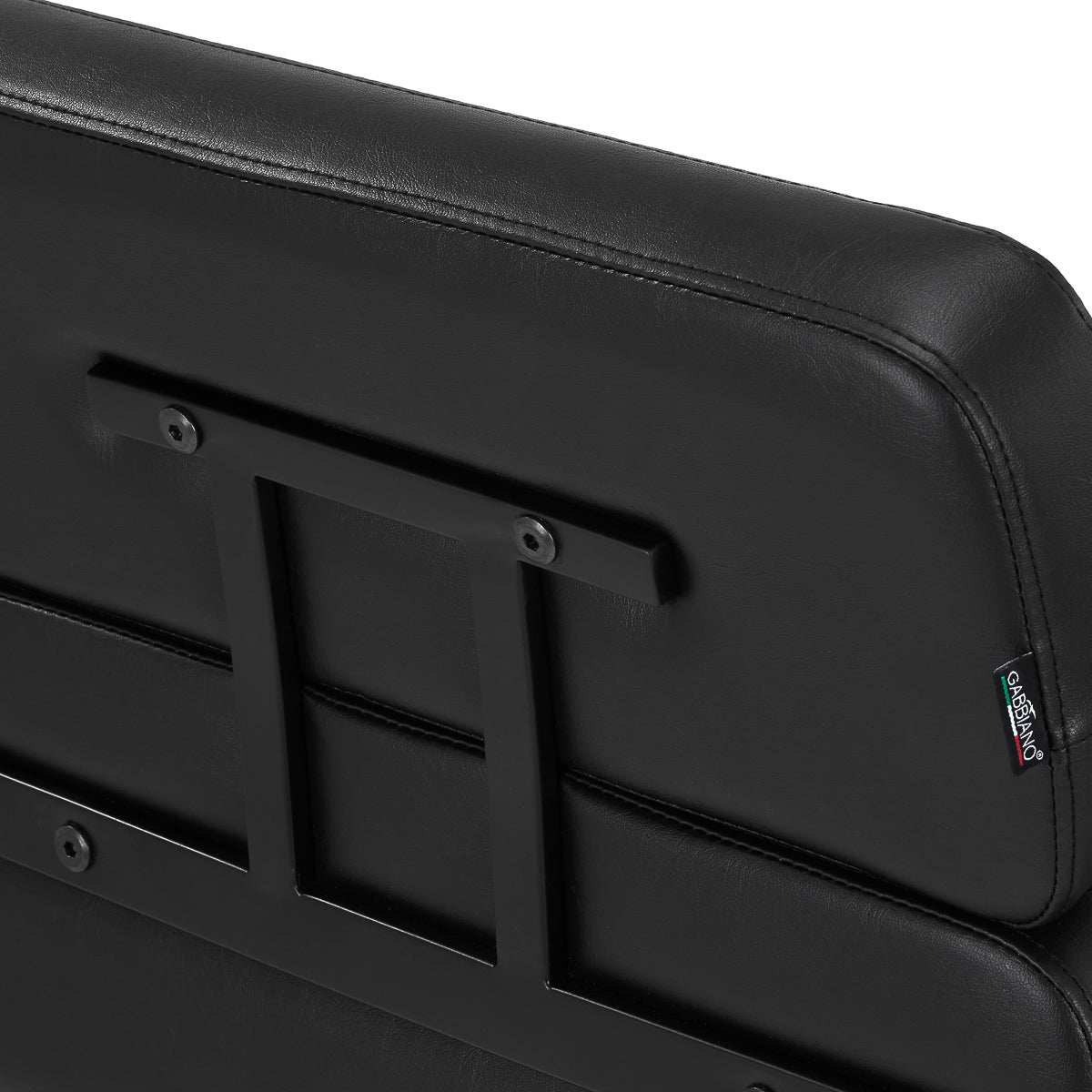 Die Füllung aus strapazierfähigem, verformungsbeständigem Schaumstoff und die Polsterung aus angenehm haptischem Kunstleder sorgen für die Langlebigkeit der Möbel und ihre komfortable Nutzung über einen langen Zeitraum. Außerdem machen sie die Geräte feuchtigkeitsbeständig, langlebig und leicht zu reinigen. Der Bezug in Schwarztönen verleiht ihm einen einzigartigen Charakter. Die Ausstattung zeichnet sich durch ein modernes Design aus, das den Sessel in vielen professionellen Salons großartig aussehen lässt.