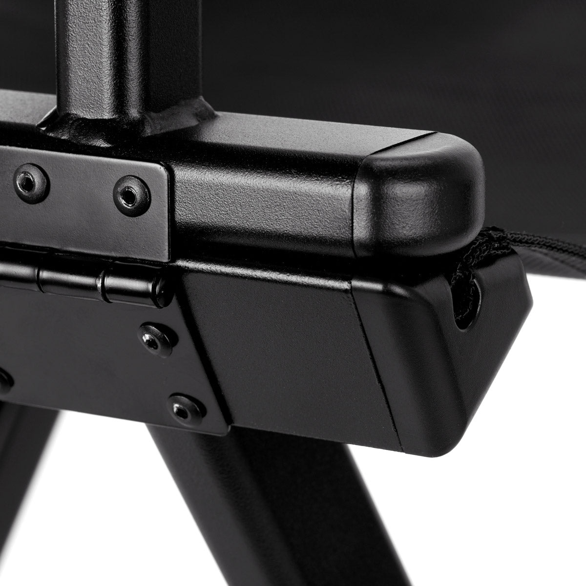 Der Stuhl verfügt über ein Verriegelungssystem, dank dem er während des Gebrauchs Stabilität bietet. Einmal entriegelt, können sie leicht zusammengefaltet werden, wodurch sie viel einfacher zu lagern und zu transportieren sind. Minimalistische Armlehnen und Fußstütze mit einer Breite von fast 40 cm bieten dem Benutzer Komfort beim Make-up. Zusammen mit der Rückenlehne ermöglichen sie es Ihnen, die richtige Position einzunehmen, was besonders bei längeren Behandlungen wichtig ist. Die angewandten Lösungen machen den Stuhl äußerst praktisch, bieten viel Platz zum Arbeiten für Menschen, die mobile Dienste anbieten, und funktionieren auch unter den ungewöhnlichsten Bedingungen.