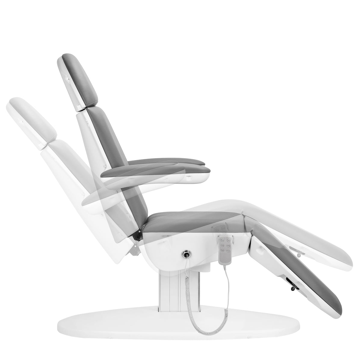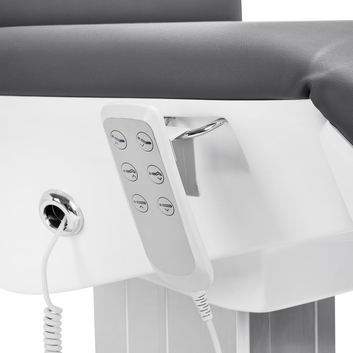 Der elektrische Kosmetikstuhl Eclipse mit modernem Design ist mit 3 Aktuatoren ausgestattet, die über eine Fernbedienung am Kabel und eine manuell verstellbare Fußstütze gesteuert werden. Die einfache Einstellung ermöglicht eine reibungslose Positionierung, um eine Vielzahl von Behandlungen durchzuführen, und das minimalistische Finish funktioniert in fast jedem Interieur.