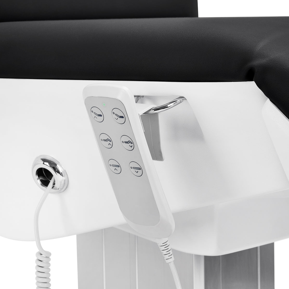 Der elektrische Kosmetikstuhl Eclipse mit modernem Design ist mit 3 Aktuatoren ausgestattet, die über eine Fernbedienung am Kabel und eine manuell verstellbare Fußstütze gesteuert werden. Die einfache Einstellung ermöglicht eine reibungslose Positionierung, um eine Vielzahl von Behandlungen durchzuführen, und das minimalistische Finish funktioniert in fast jedem Interieur.