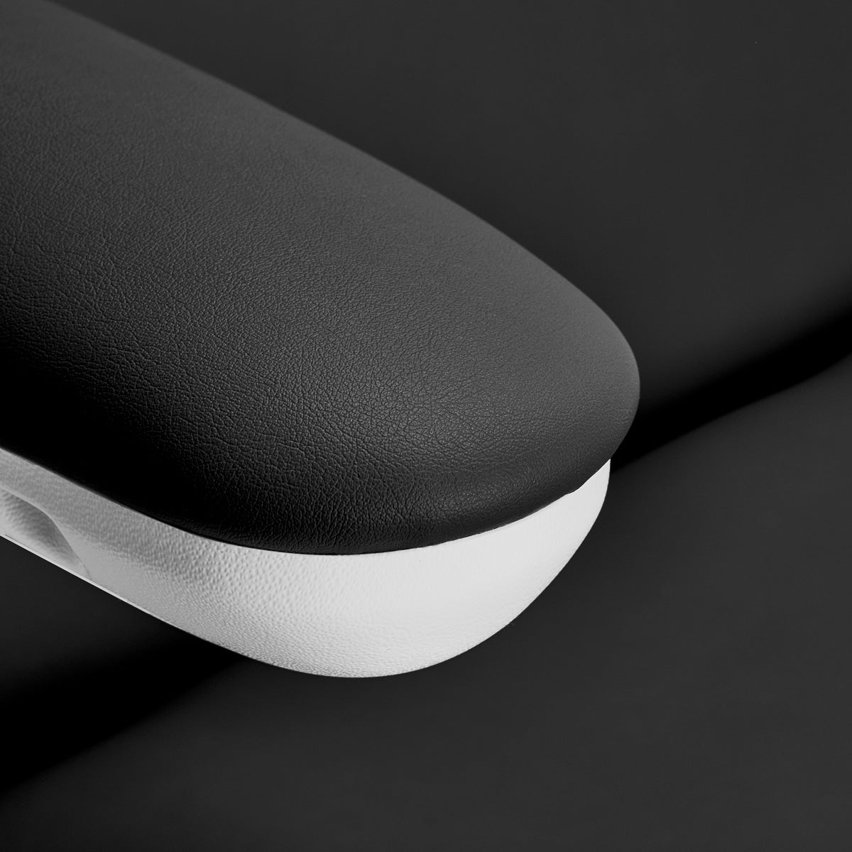 Die Kopfstütze ist ausziehbar, was dazu beiträgt, die Ausrüstung an die Bedürfnisse von Benutzern unterschiedlicher Körpergröße anzupassen und während der Behandlungen eine stabile Kopfstütze zu bieten. 180º bewegliche Armlehnen erleichtern das Sitzen und bieten einen bequemen Zugang für die Person, die den Eingriff durchführt. Die angewandten Lösungen beeinflussen maßgeblich den hohen Bedienkomfort und die Ergonomie der Arbeit.