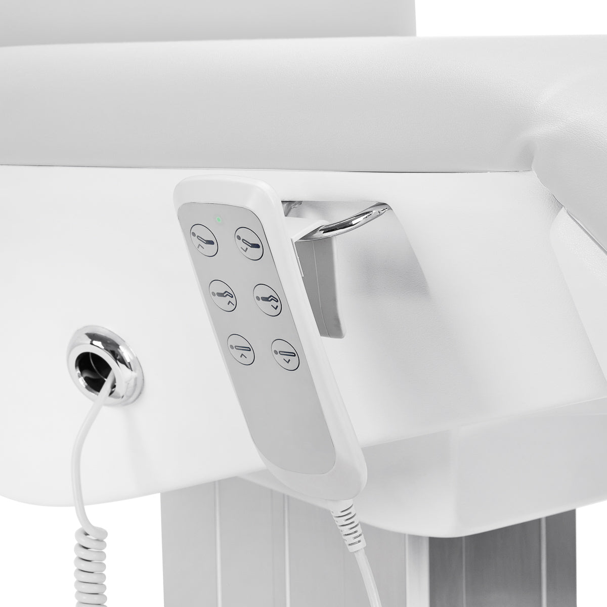 Der elektrische Kosmetikstuhl Eclipse mit modernem Design ist mit 3 Aktuatoren ausgestattet, die über eine Fernbedienung am Kabel und eine manuell verstellbare Fußstütze gesteuert werden. Die einfache Einstellung ermöglicht eine reibungslose Positionierung, um eine Vielzahl von Behandlungen durchzuführen, und das minimalistische Finish funktioniert in fast jedem Interieur.