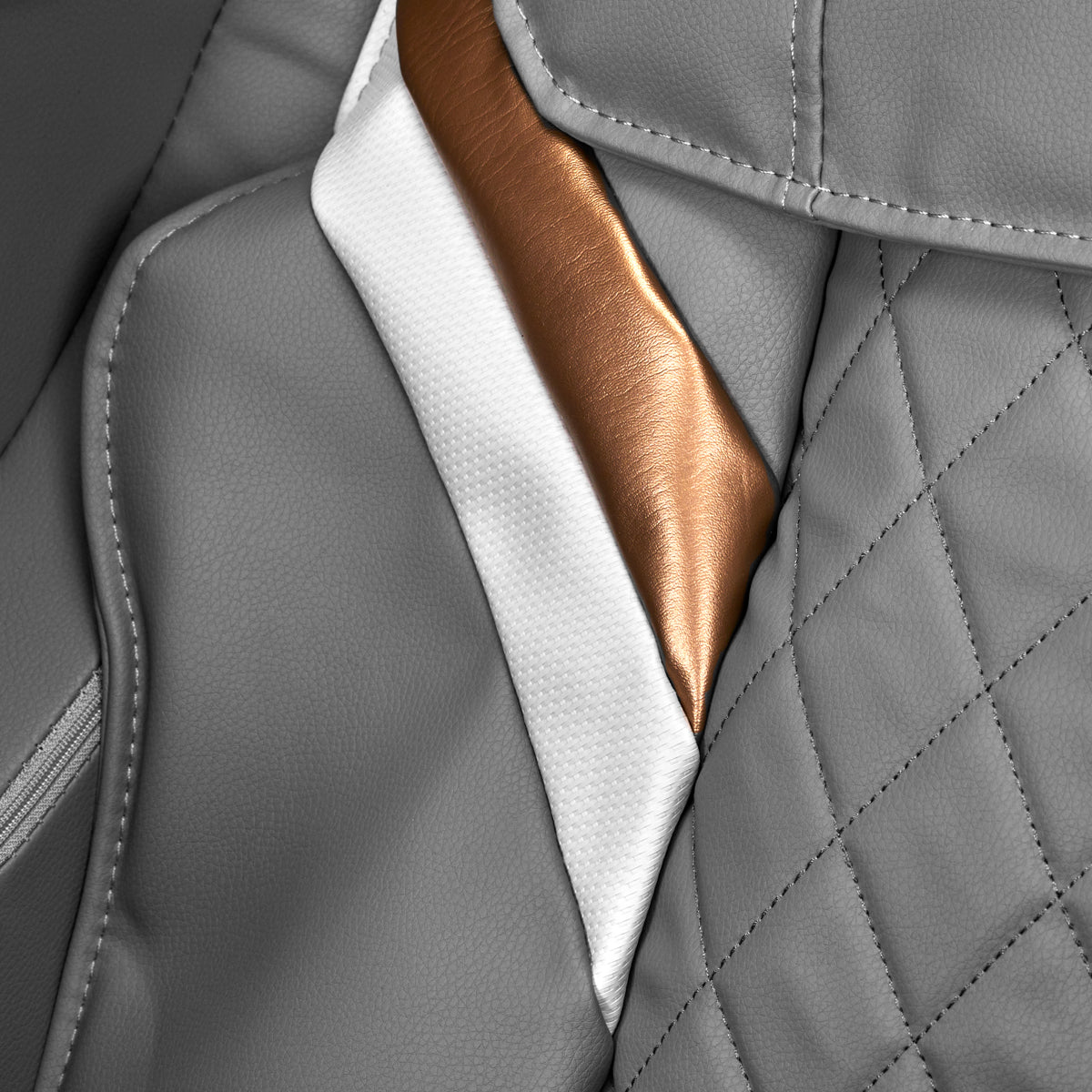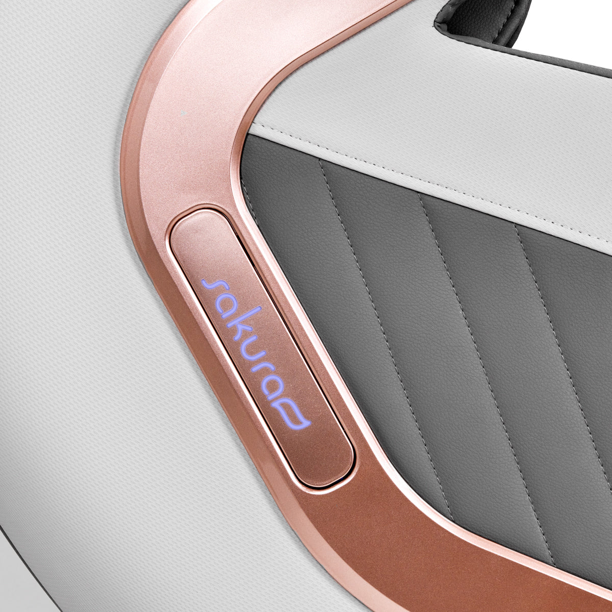 Das komfortable Innere des Sessels ist mit einem angenehm anzufassenden Lederimitat in Grautönen bezogen. Die Verwendung eines solchen Materials macht es sehr feuchtigkeitsbeständig und leicht zu reinigen. Die an den Außenseiten des Sessels verwendeten Materialien in Weiß- und Grautönen und ein dekoratives Element im Roségoldton verleihen dem Produkt ein charakteristisches, elegantes Aussehen, das es von anderen unterscheidet. Sorgfältig verarbeitete Säume verleihen ihm einen stilvollen Look und die solide Konstruktion garantiert eine lange Nutzung. Das kompakte Modell mit ästhetischem Finish und klassischen Farben passt perfekt in jedes Interieur. Der Sakura Classic 802A Massagesessel ist die perfekte Möglichkeit, sich jederzeit zu entspannen, besonders nach einem anstrengenden Tag oder einem harten Training.