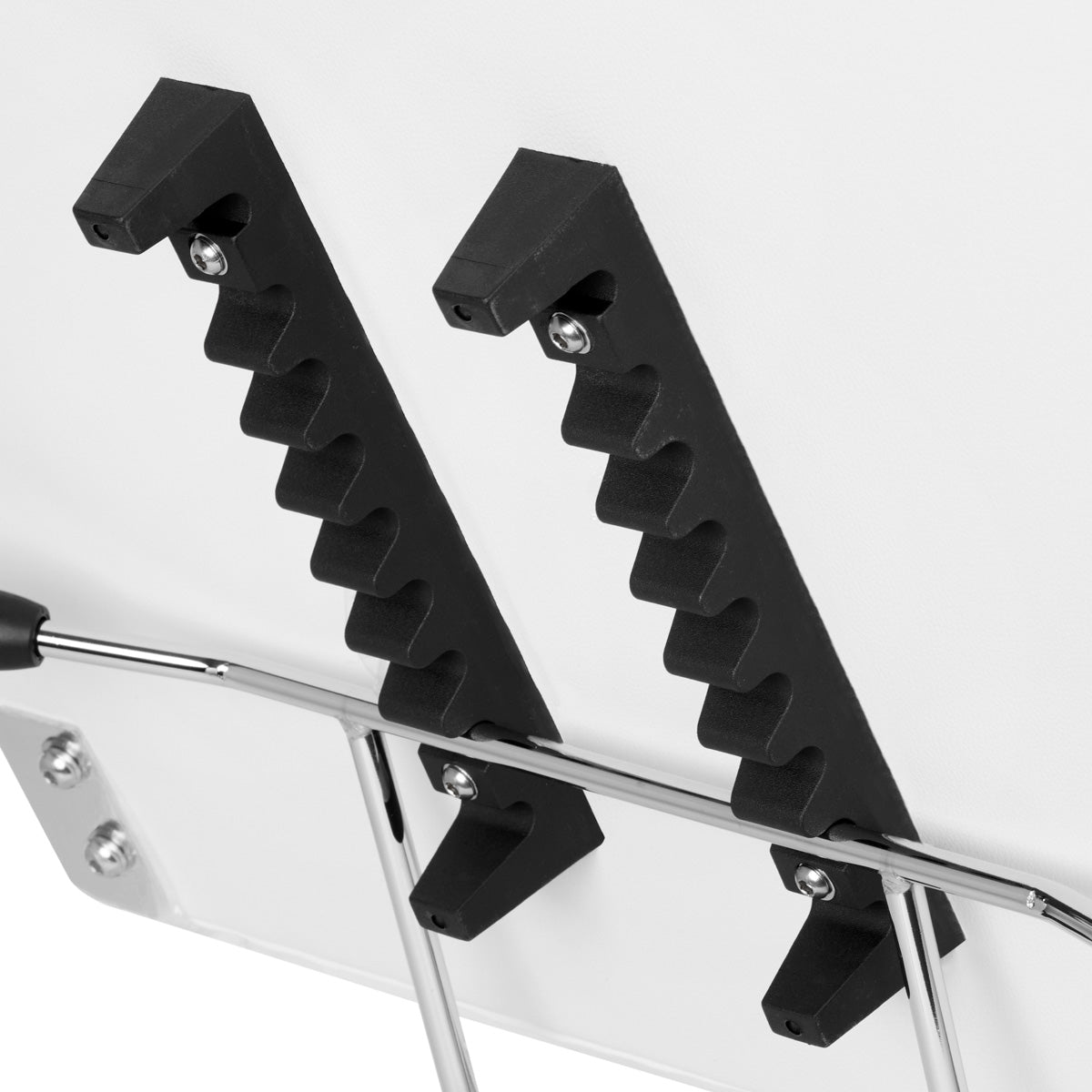 Die stufenlose Einstellung der Winkel, in denen sich die Fußstütze und die Rückenlehne befinden, erfolgt durch einen speziellen Mechanismus. Mit dem manuellen Hebel können Sie die Position des Sitzes stufenlos einstellen. Dies ermöglicht eine optimale Anpassung an die individuellen Bedürfnisse, eine korrekte und komfortable Durchführung der Behandlungen und einen hohen Anwendungskomfort. Der Stuhl kann bis zur Position einer Couch ausgeklappt werden, was seine Funktionalität deutlich erhöht. Auf diese Weise können Sie verschiedene Arten von Behandlungen, einschließlich Kosmetik, Physiotherapie oder Tätowierung, frei durchführen.
