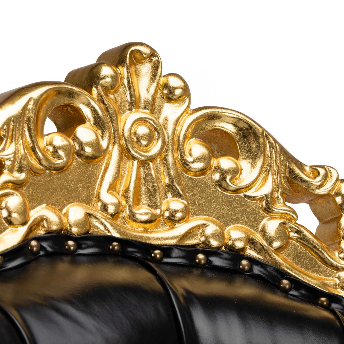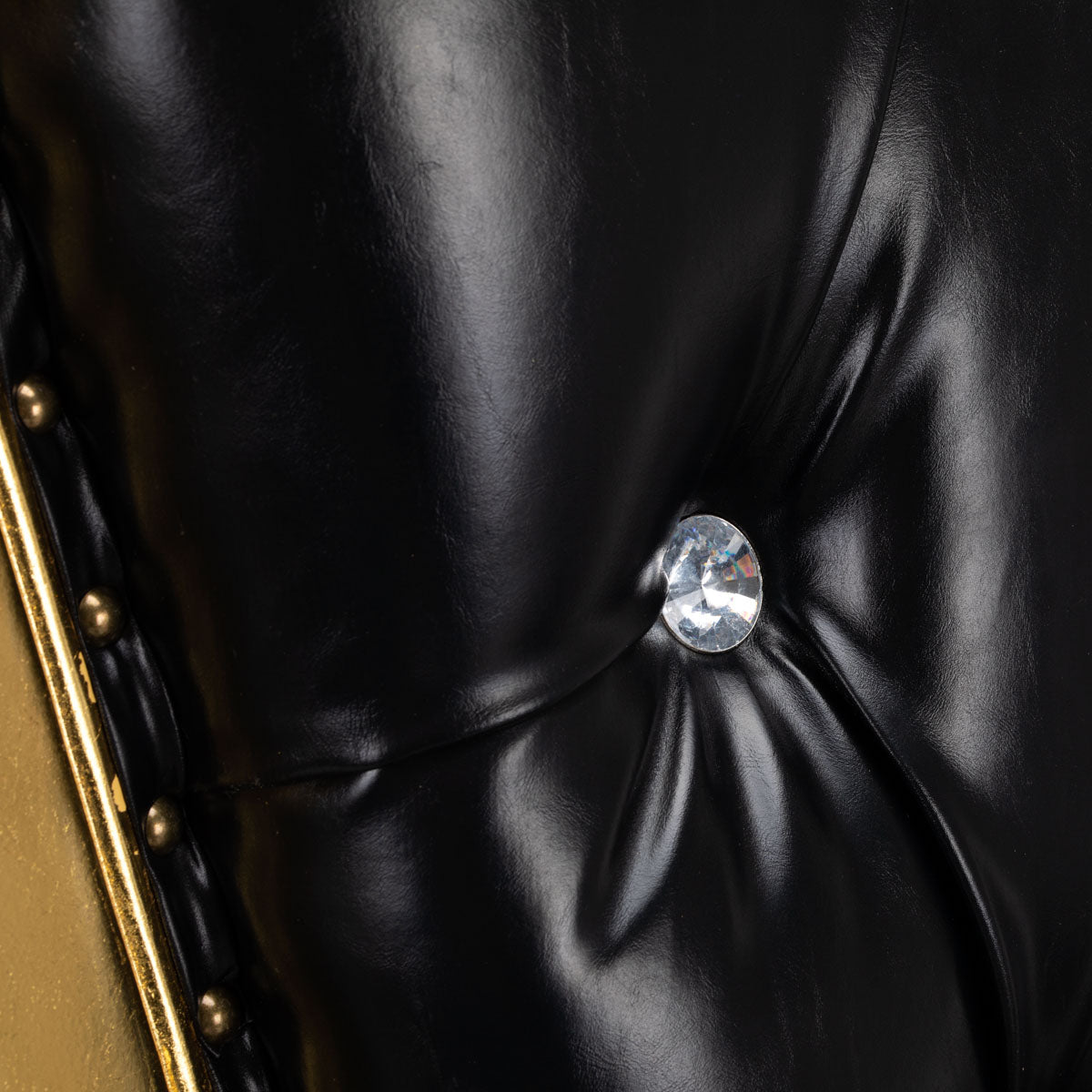 Die strapazierfähige Basis in Weißtönen sorgt für Stabilität während der Behandlungen und ihre glatte Oberfläche ist leicht sauber zu halten. Der Stuhl ist mit Schaumstoff gefüllt und mit einer angenehm zu berührenden Lederimitation in Schwarztönen bezogen. Dank der Verwendung eines solchen Materials ist das Gerät resistent gegen Feuchtigkeit und Abrieb und anspruchslos zu reinigen. Das Finish mit ausgefallenen Elementen in Altgoldtönen, Steppung und dekorativen Knöpfen verleiht ihm einen einzigartigen Ausdruck. Der spektakuläre Tron-Pediküre-Stand wird den anspruchsvollen Charakter des Salons unterstreichen und den Kunden sicherlich in Erinnerung bleiben.