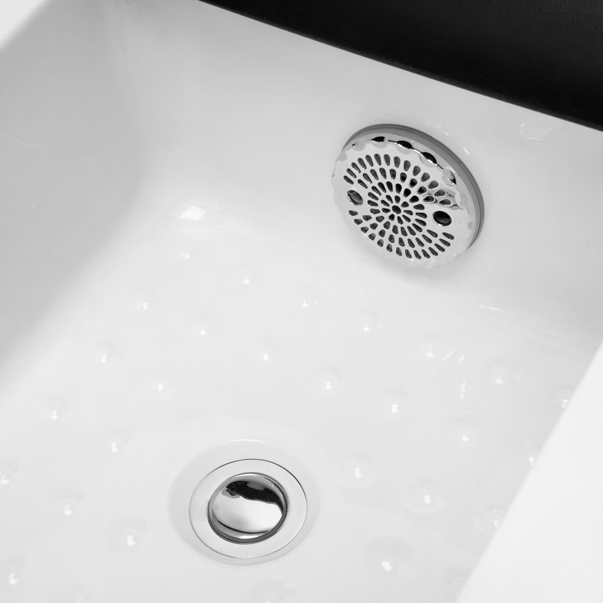 Das Planschbecken ist mit einer Wassermassagefunktion ausgestattet, die die Behandlung angenehmer macht und es Ihnen ermöglicht, die Muskeln zu entspannen und die Durchblutung zu verbessern. Hydromassage kann auch helfen, Schmerzen zu lindern und das Wohlbefinden deutlich zu verbessern. Die in der Duschwanne montierte Lampe trägt dazu bei, eine einzigartige Atmosphäre während der Gottesdienste zu schaffen. Die Möglichkeit, es in verschiedenen Farben zu beleuchten, macht die Fußpflege zu einem äußerst angenehmen Erlebnis. Die Durchführung von Behandlungen wird durch ein an der Duschwanne montiertes Mobilteil und eine zusätzliche Armatur sowie eine praktische Fußstütze erheblich erleichtert. All diese Details bieten dem Benutzer völlige Entspannung und hinterlassen einzigartige Erinnerungen an einen Besuch im Salon.